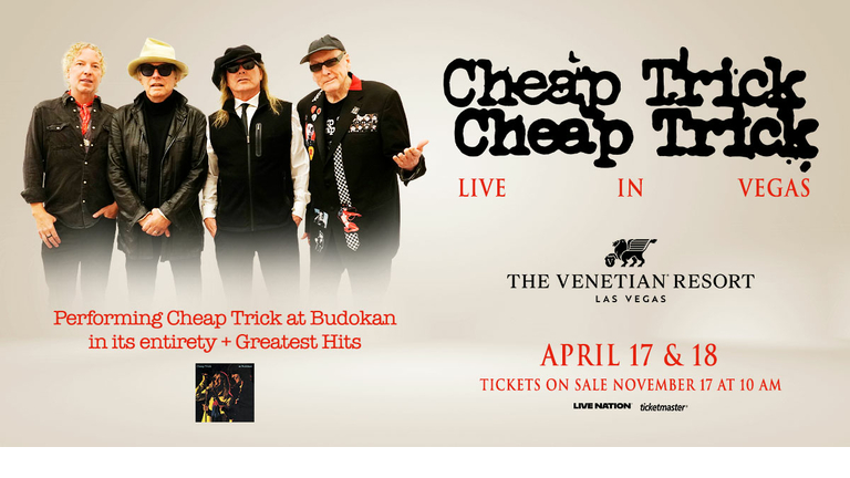 On April 17th and 18th 2026, iconic power pop band, Cheap Trick will be performing live in Las Vegas at The Venetian Theatre for their All Washed Up Tour!