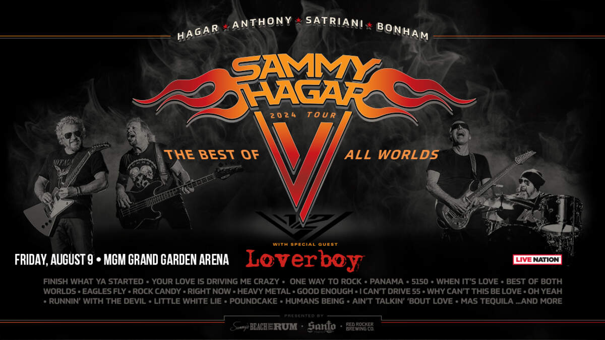 Sammy Hagar is coming to Las Vegas for The Best of All Worlds Tour! See him at the MGM Grand Garden Arena on August 9, 2024.